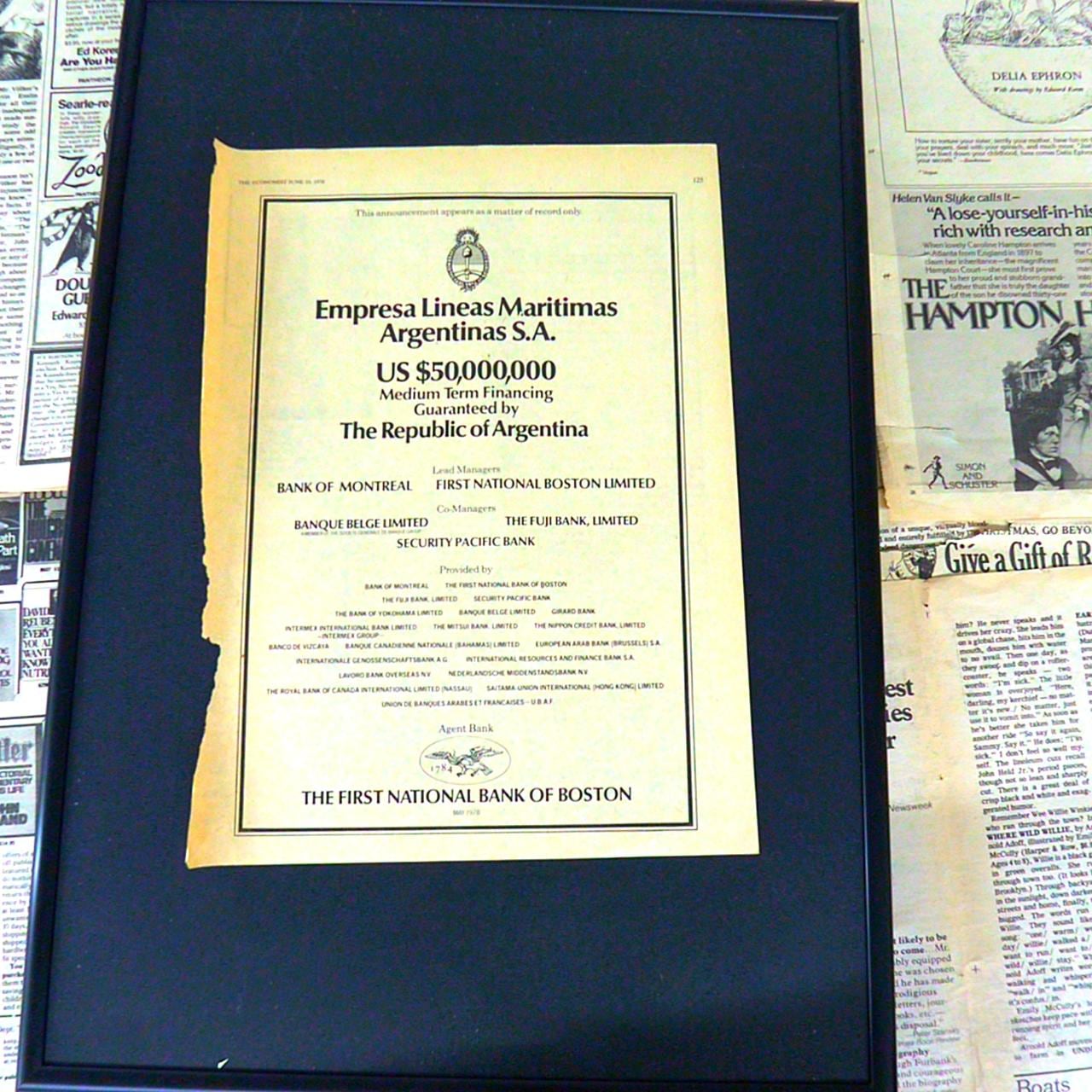The First National Bank of Bostonの広告切り抜きです。1970年代のNYTから切り抜いたものとなります。