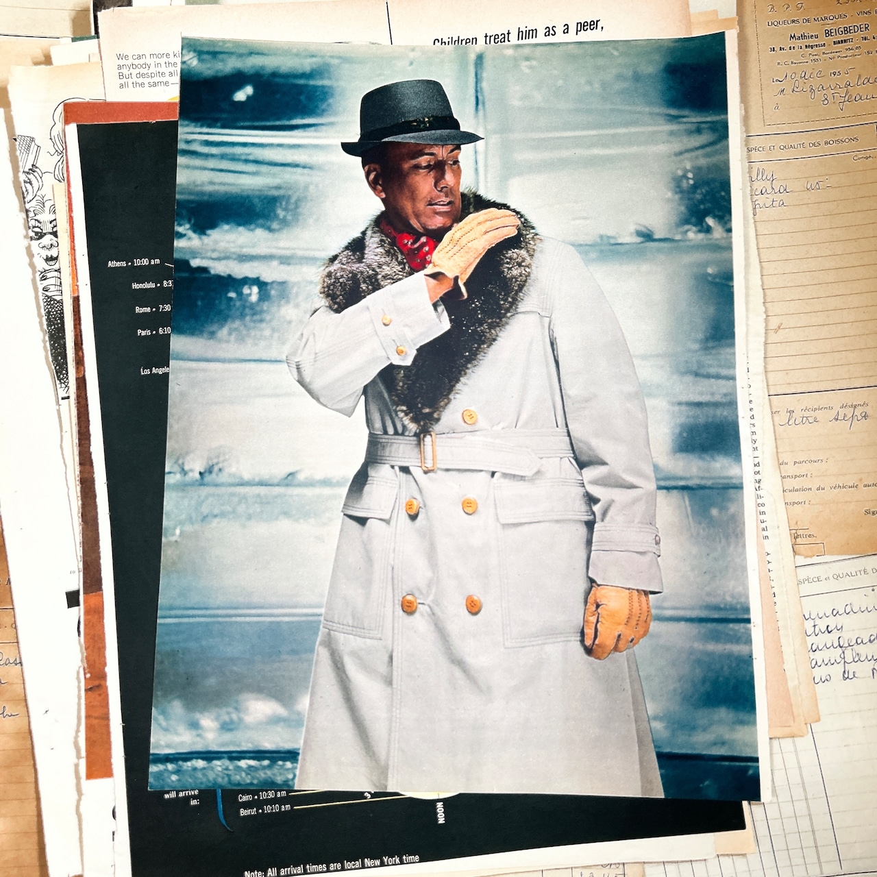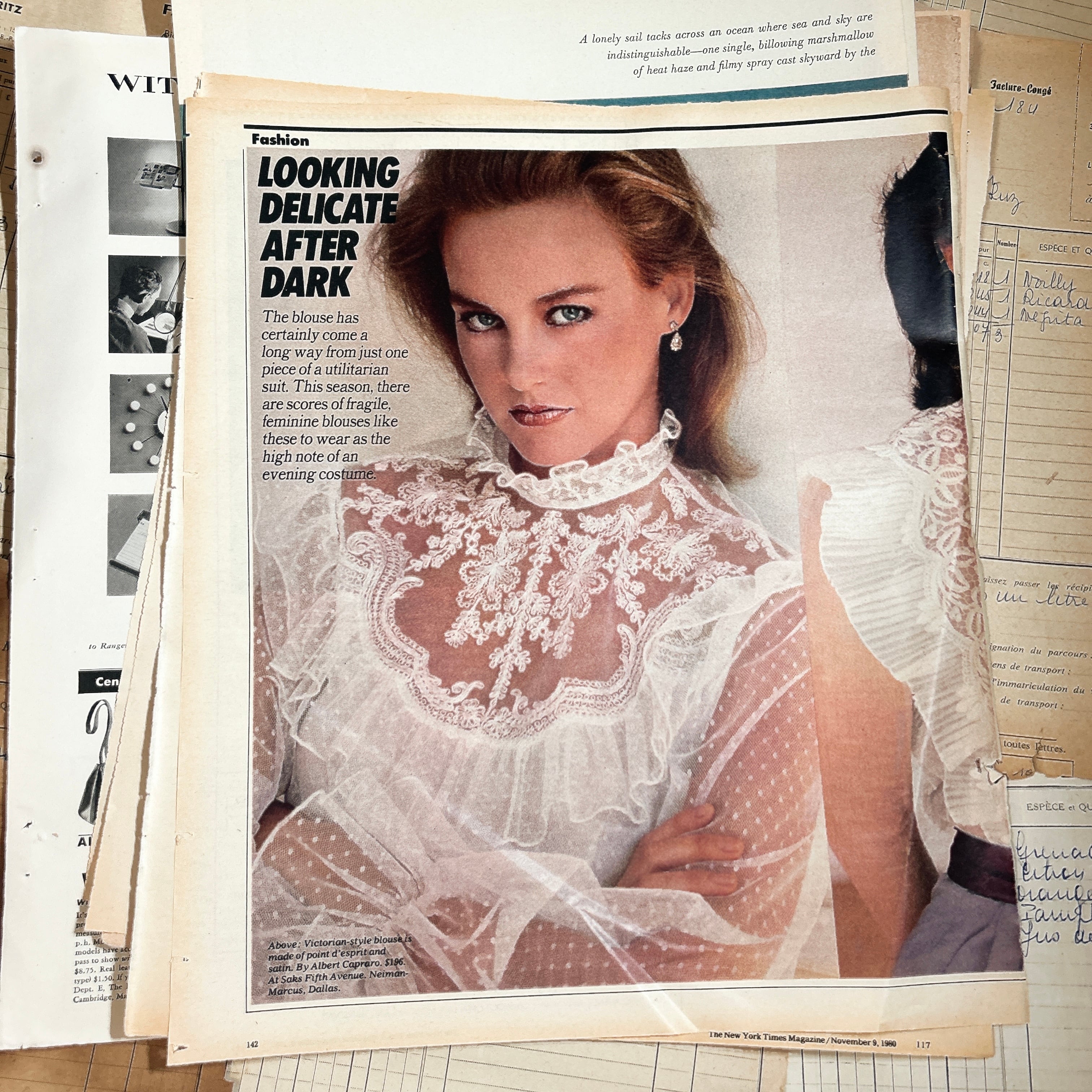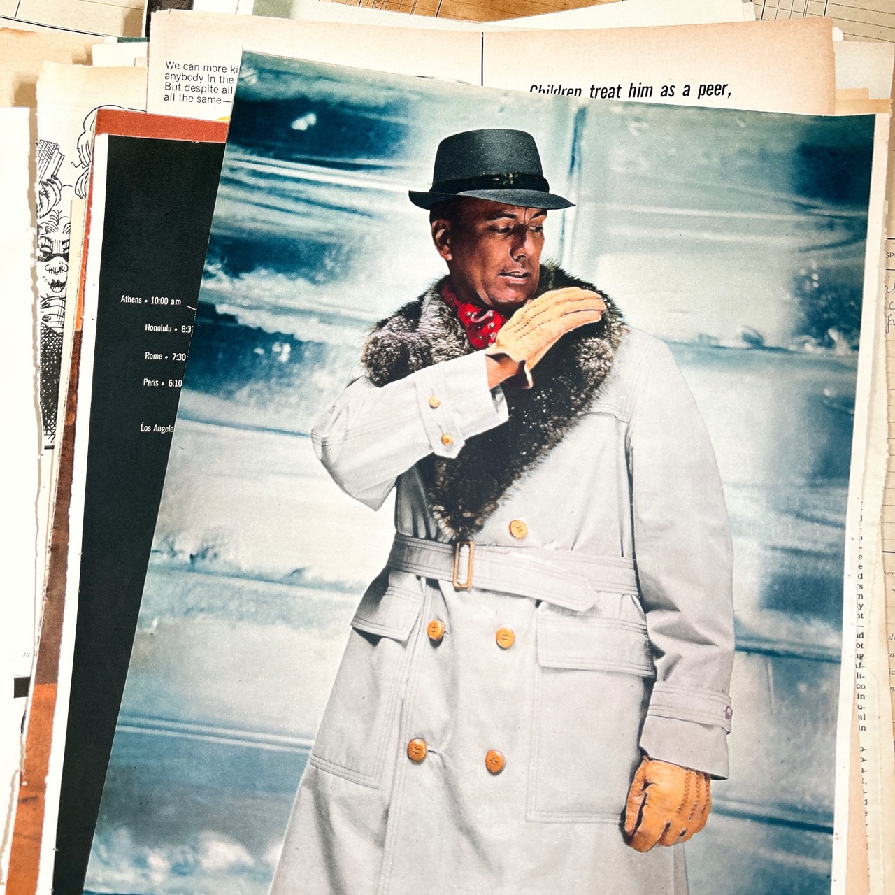 紙質は経年によるやわらかな風合いがあり、端のヤケや小さなシミ、折れなども含まれますが、それらもヴィンテージならではの魅力としてお楽しみいただけます。実際に使われていた雑誌ページのため、一点一点に個体差があります。