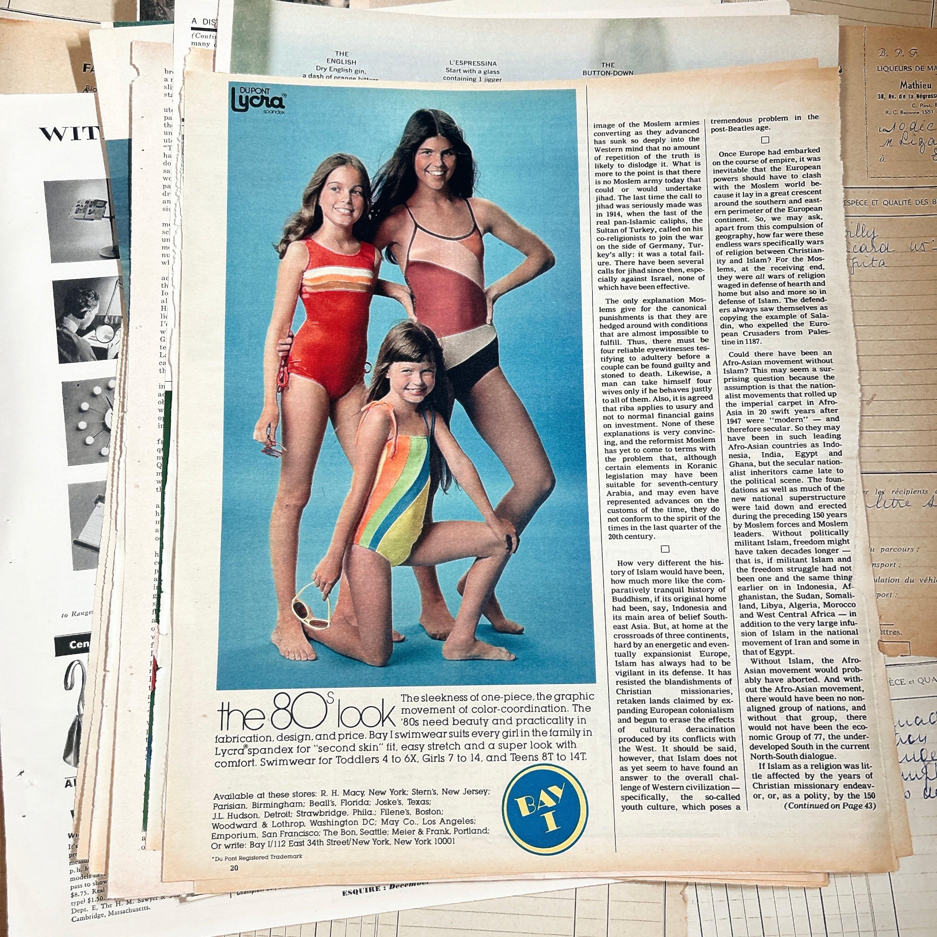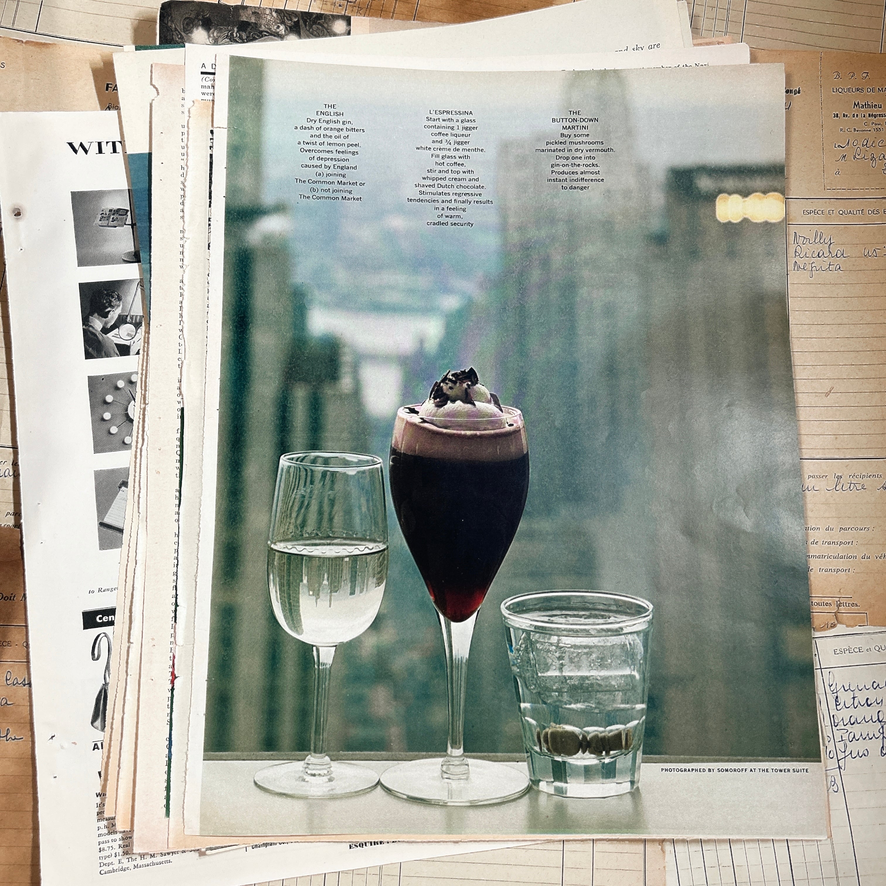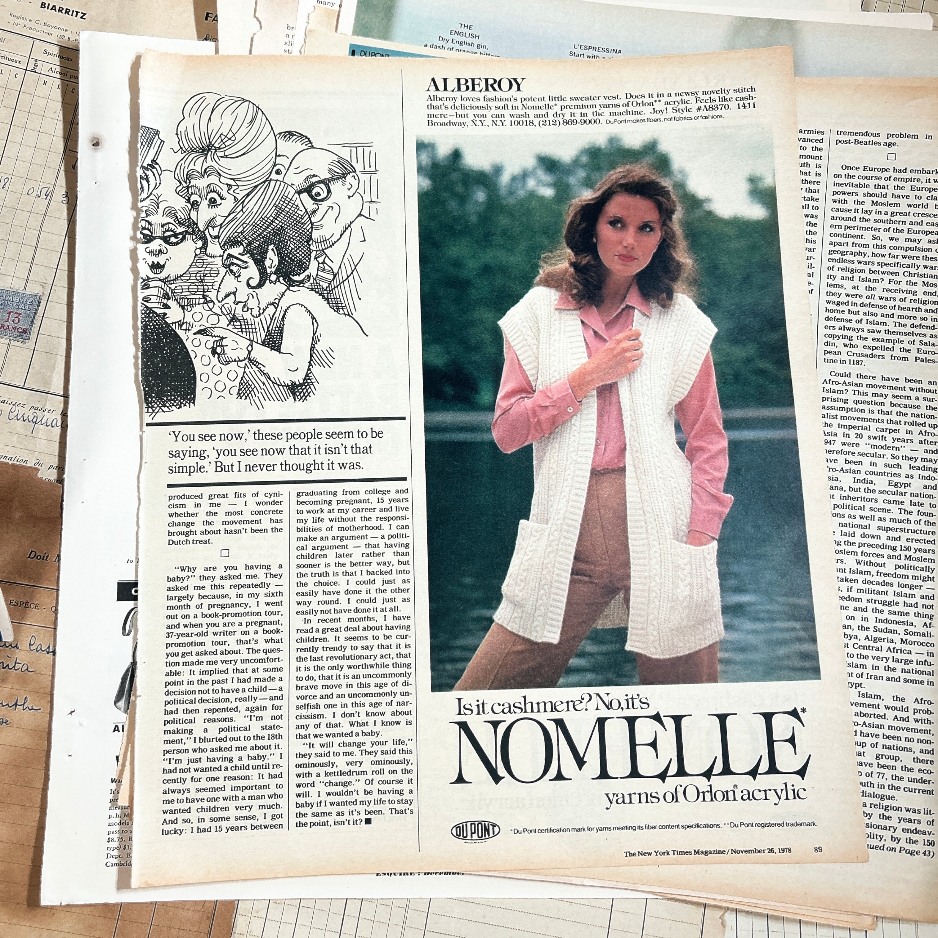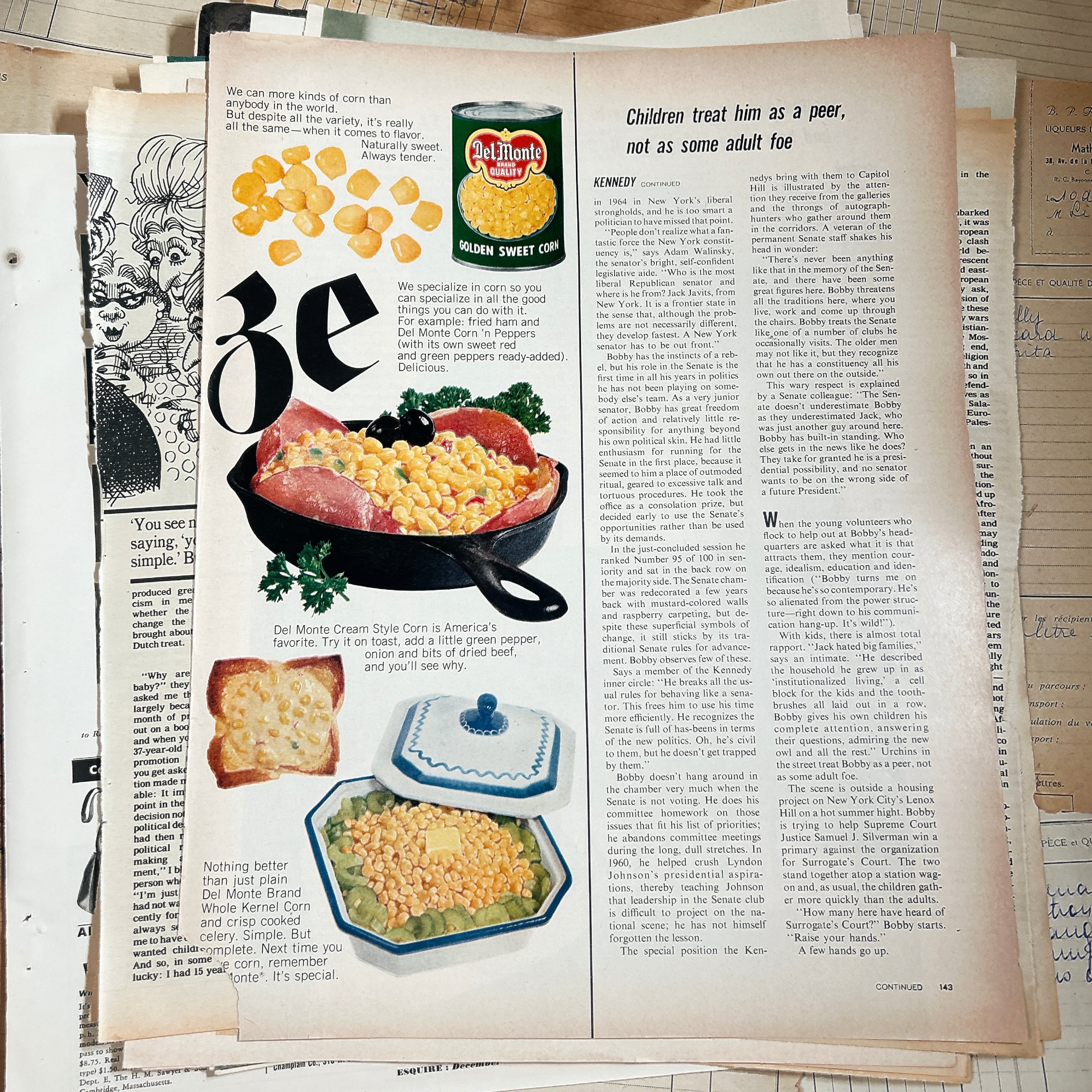 紙質は経年によるやわらかな風合いがあり、端のヤケや小さなシミ、折れなども含まれますが、それらもヴィンテージならではの魅力としてお楽しみいただけます。実際に使われていた雑誌ページのため、一点一点に個体差があります。