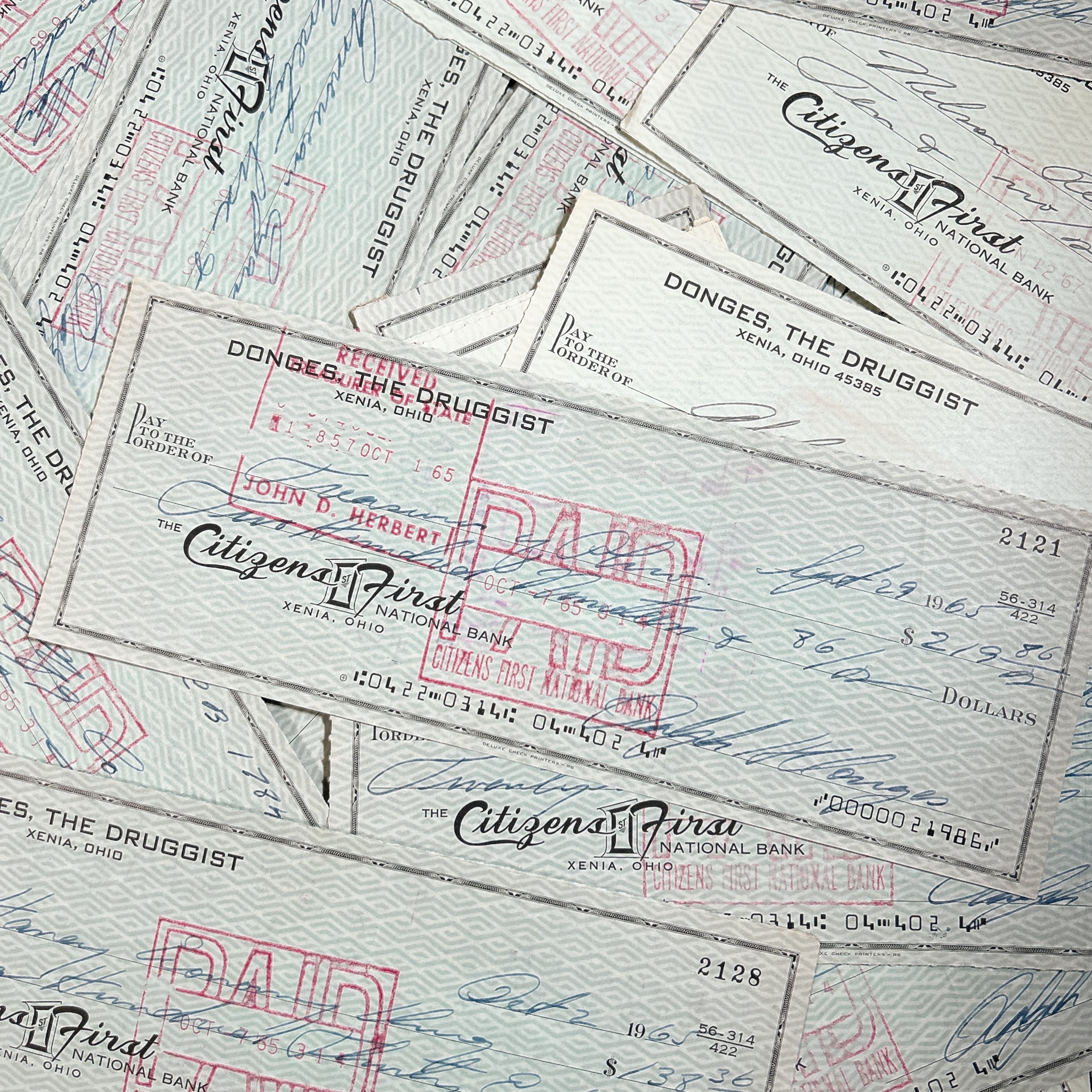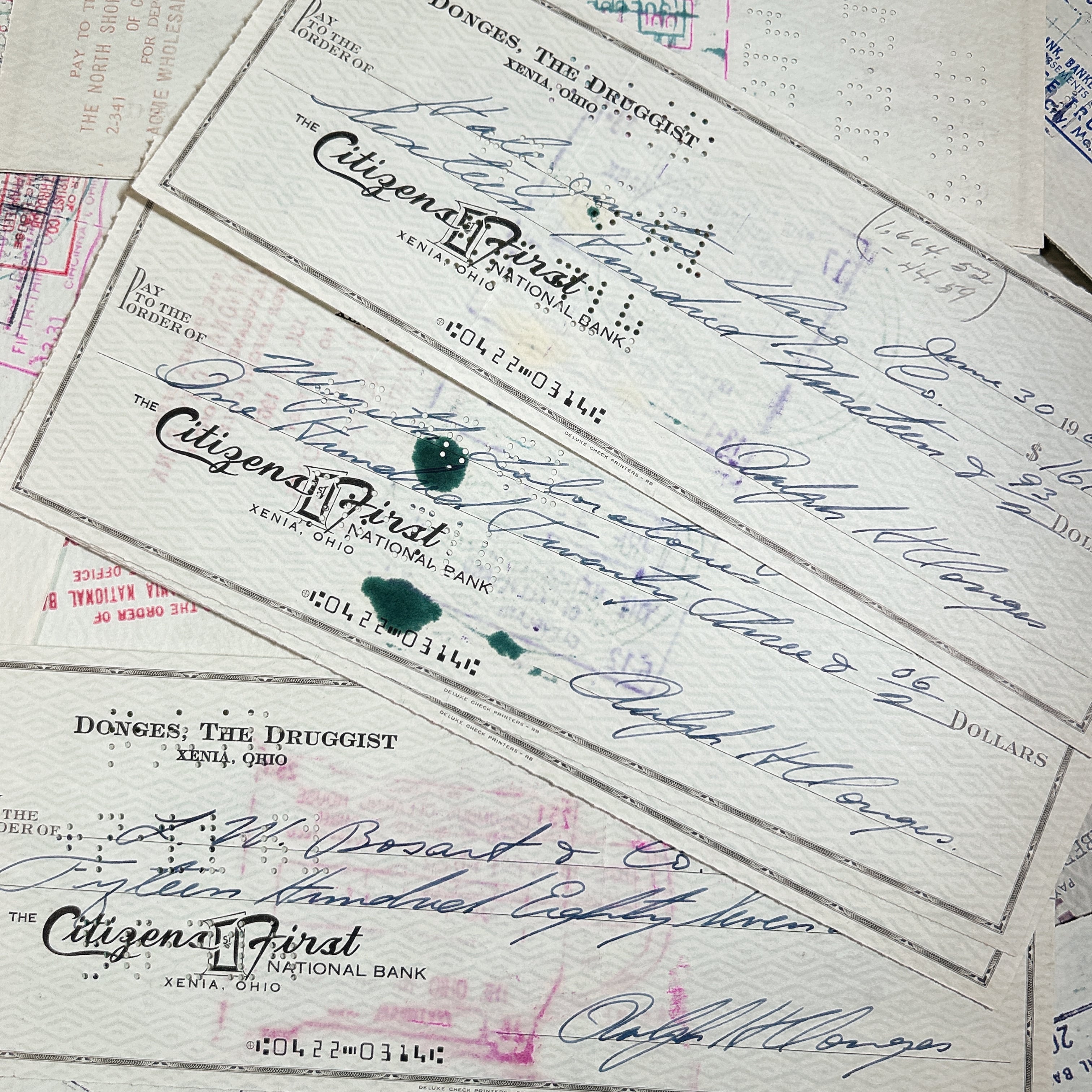 アメリカ・オハイオ州ゼニアの Citizens First National Bank 発行のヴィンテージ小切手20枚セットです。