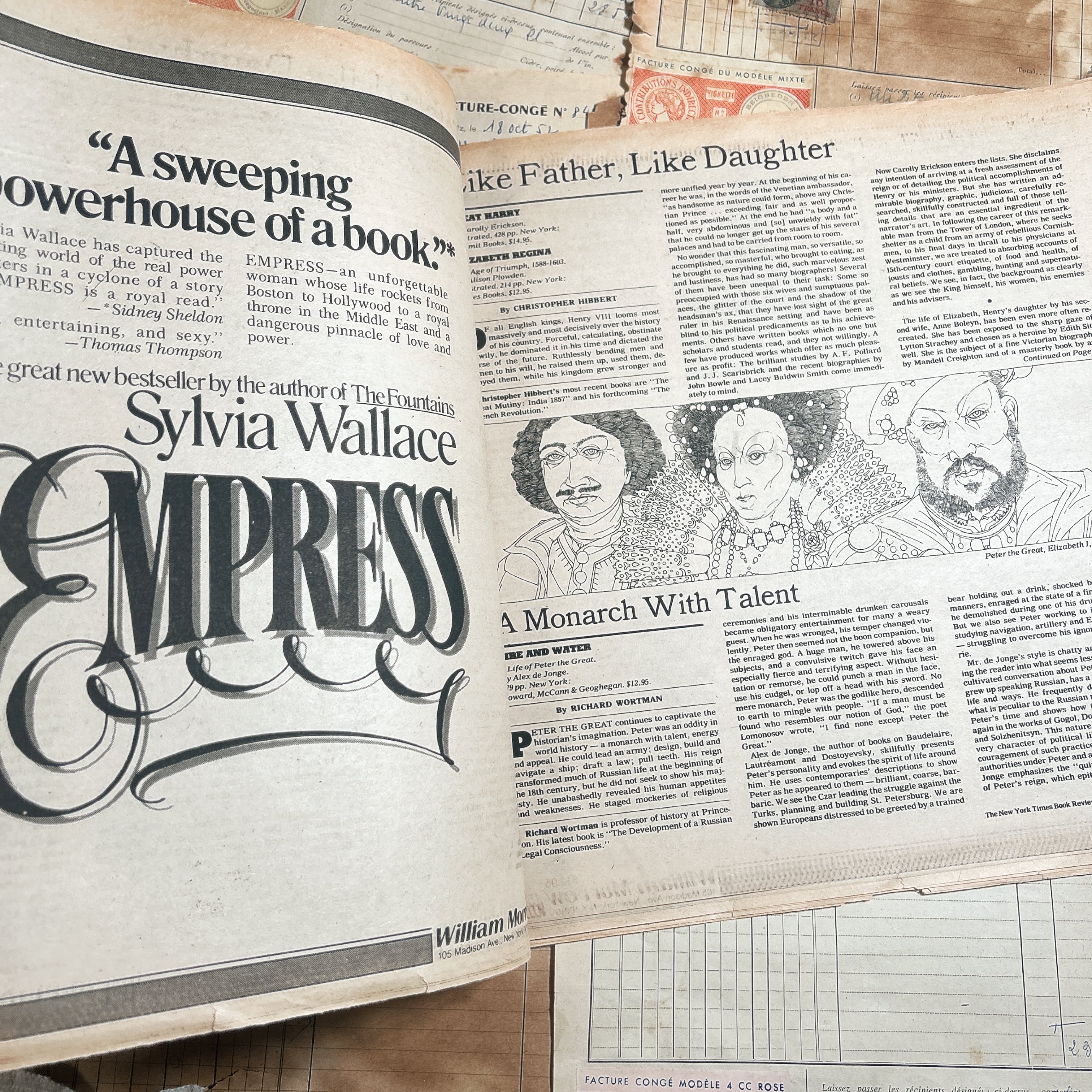 こちらは1980年代『The New York Times Book Review』のヴィンテージ新聞1冊です。ニューヨーク・タイムズが毎週日曜日に発行しているブックレビュー専門の別冊紙で、文学やノンフィクションを中心にした評論や特集が豊富に掲載されています。1980年当時の知的文化を色濃く反映した内容が紙面を彩ります。
