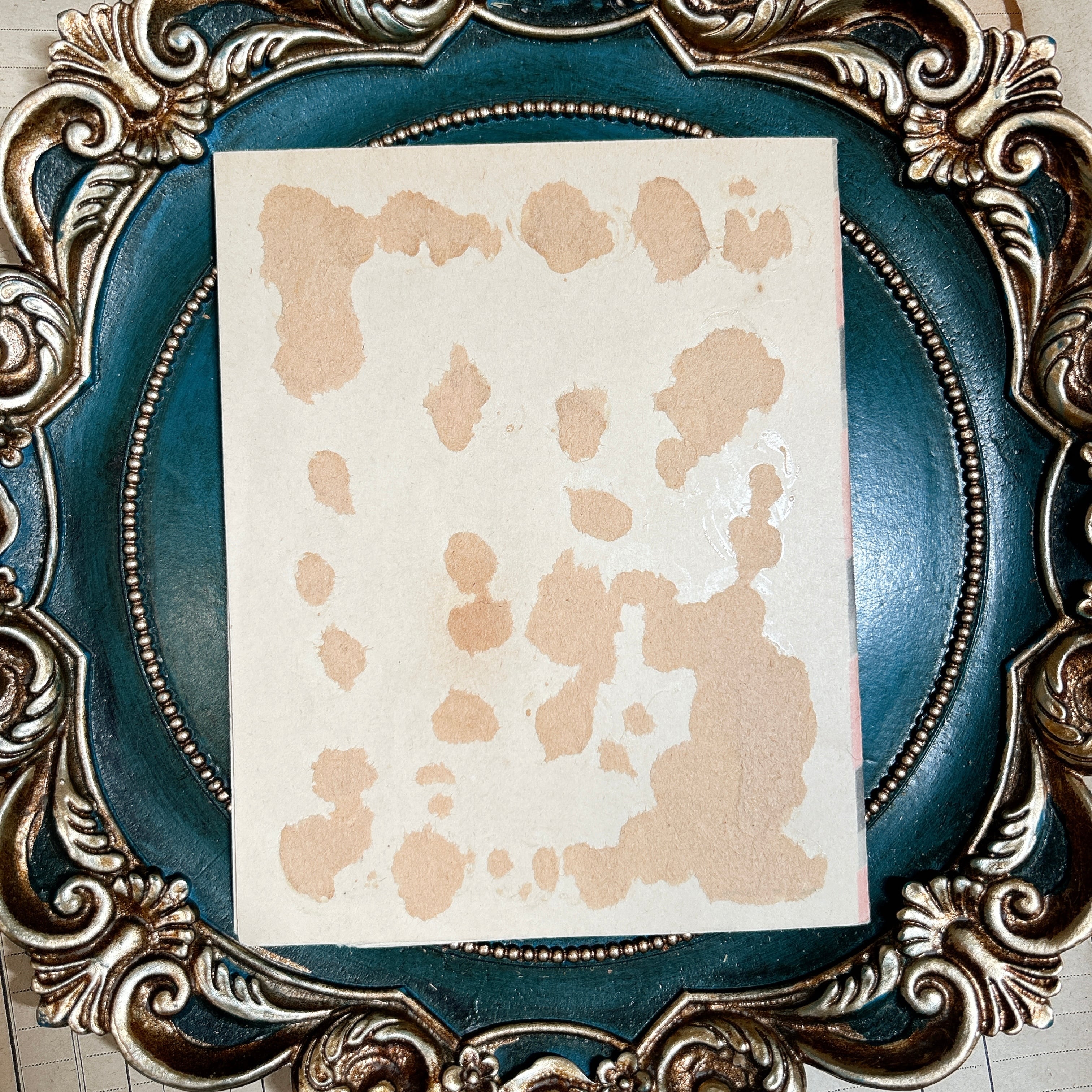 形も少し凝っており、左端にスカラップ状のやわらかなカットが入っているのも特徴です。右側にはグレーの差し色が効いており、開いた時にもデザインのまとまりがあります。飾って眺めても絵になる一枚で、コラージュやジャンクジャーナル素材としても存在感がありそうです。