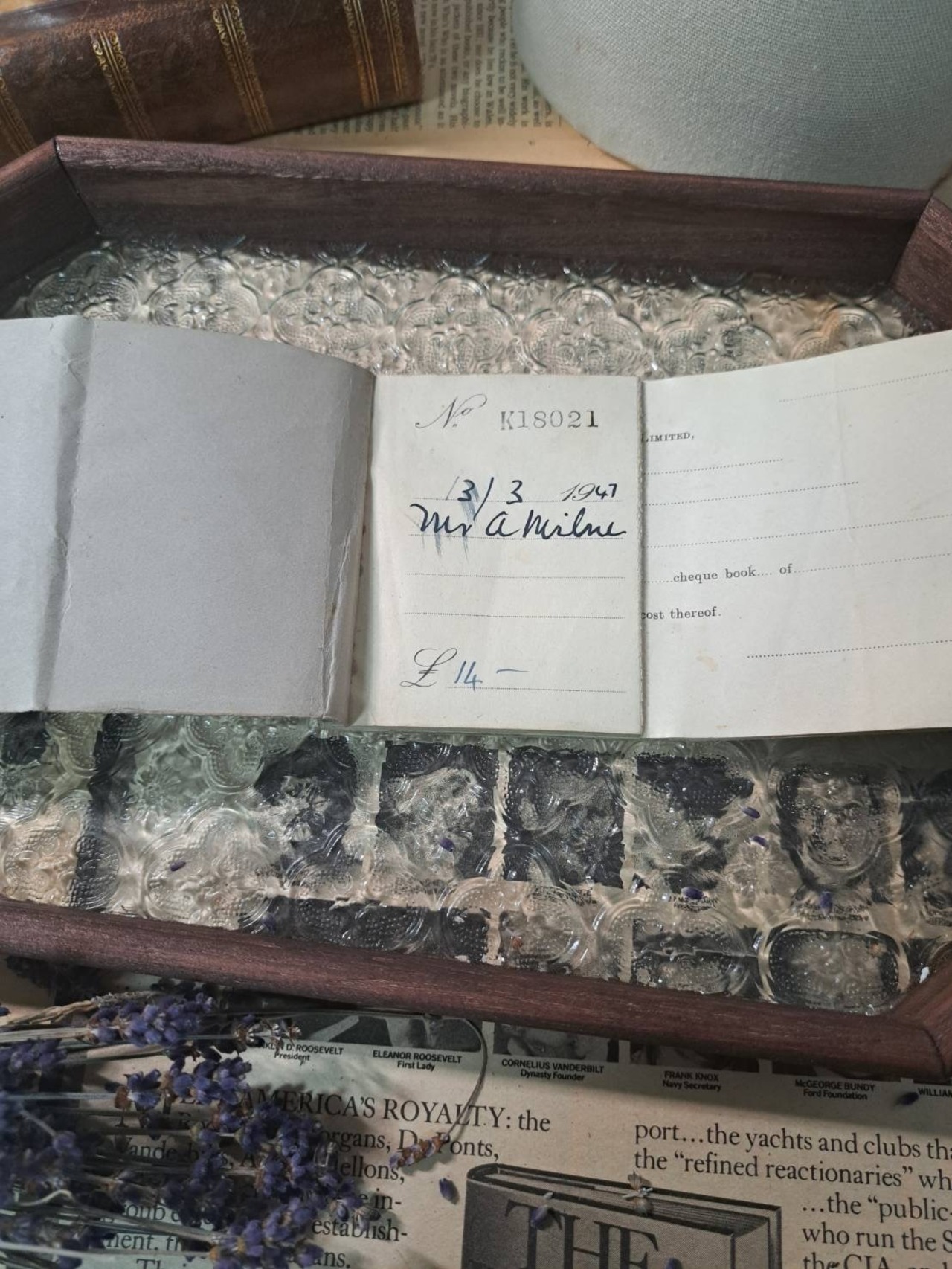 1947年3月24日に記録されたNorth of Scotland Bank Limitedのチェックブックです。当時の手書き記録が含まれており、経済的取引や帳簿の痕跡がうかがえます。シンプルながらも歴史を感じさせるこのアイテムは、ノスタルジックな魅力を放ち、コレクションとしてもおすすめです。