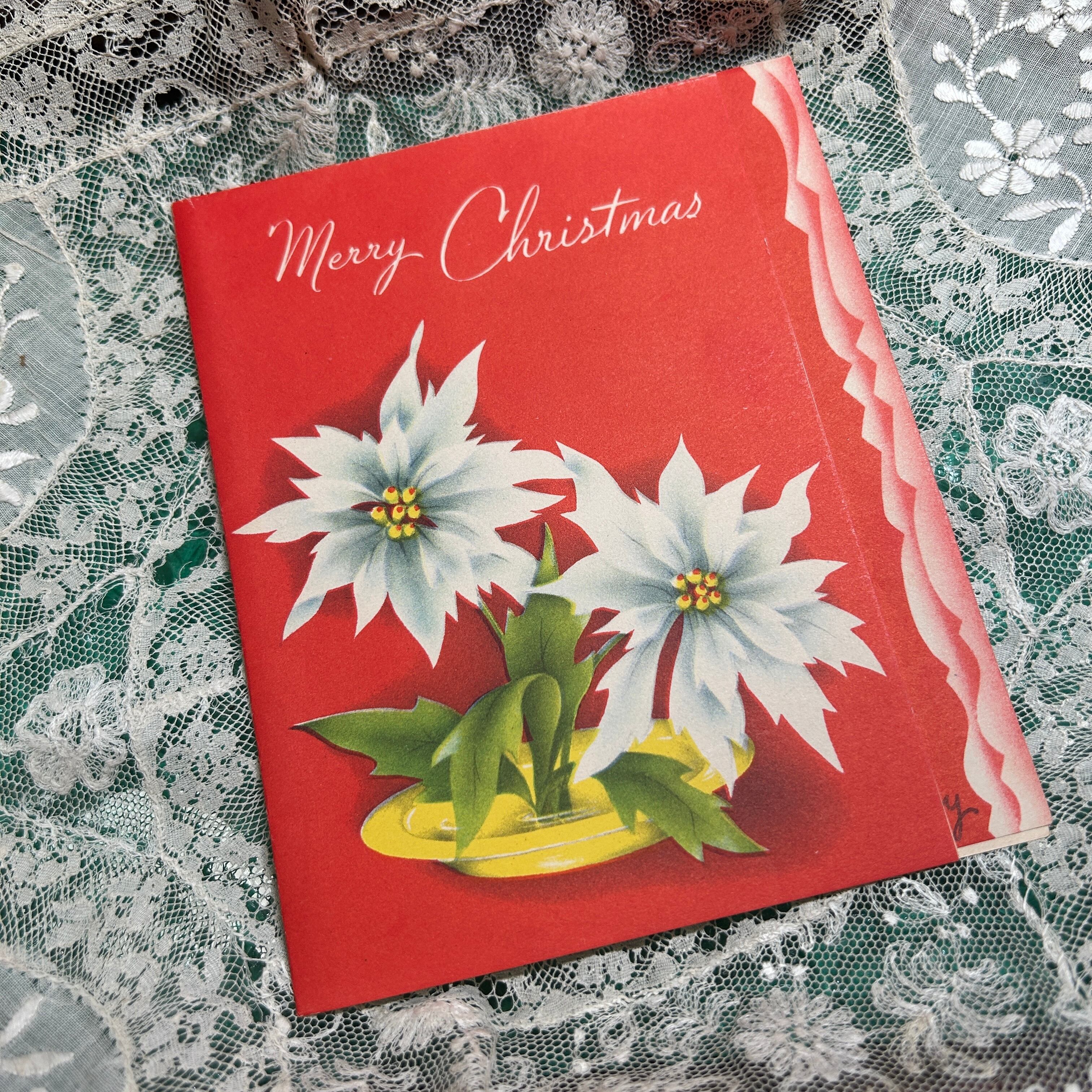 ヴィンテージ クリスマス 蚤の市 グリーティング カード ポインセチア E586