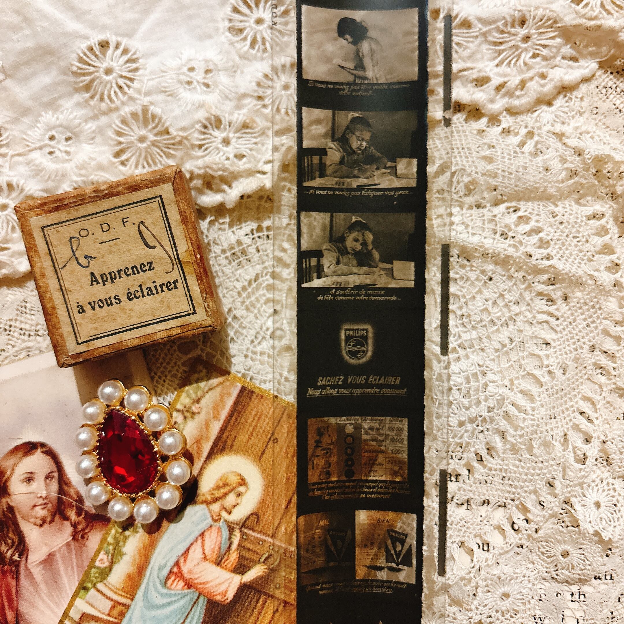 また、飾りとしてインテリアに活用したり、フィルムを透かして眺めたりするのも楽しみ方の一つです。アンティークフォトのようにアートとして楽しむのも素敵です。歴史や文化に関心がある方、ユニークな教材を探している方にもぴったりのアイテムです。フランスの教育資料として実際に使われていたからこそ持つリアルな雰囲気を感じながら、時を超えたフィルムの魅力に触れてみてください。