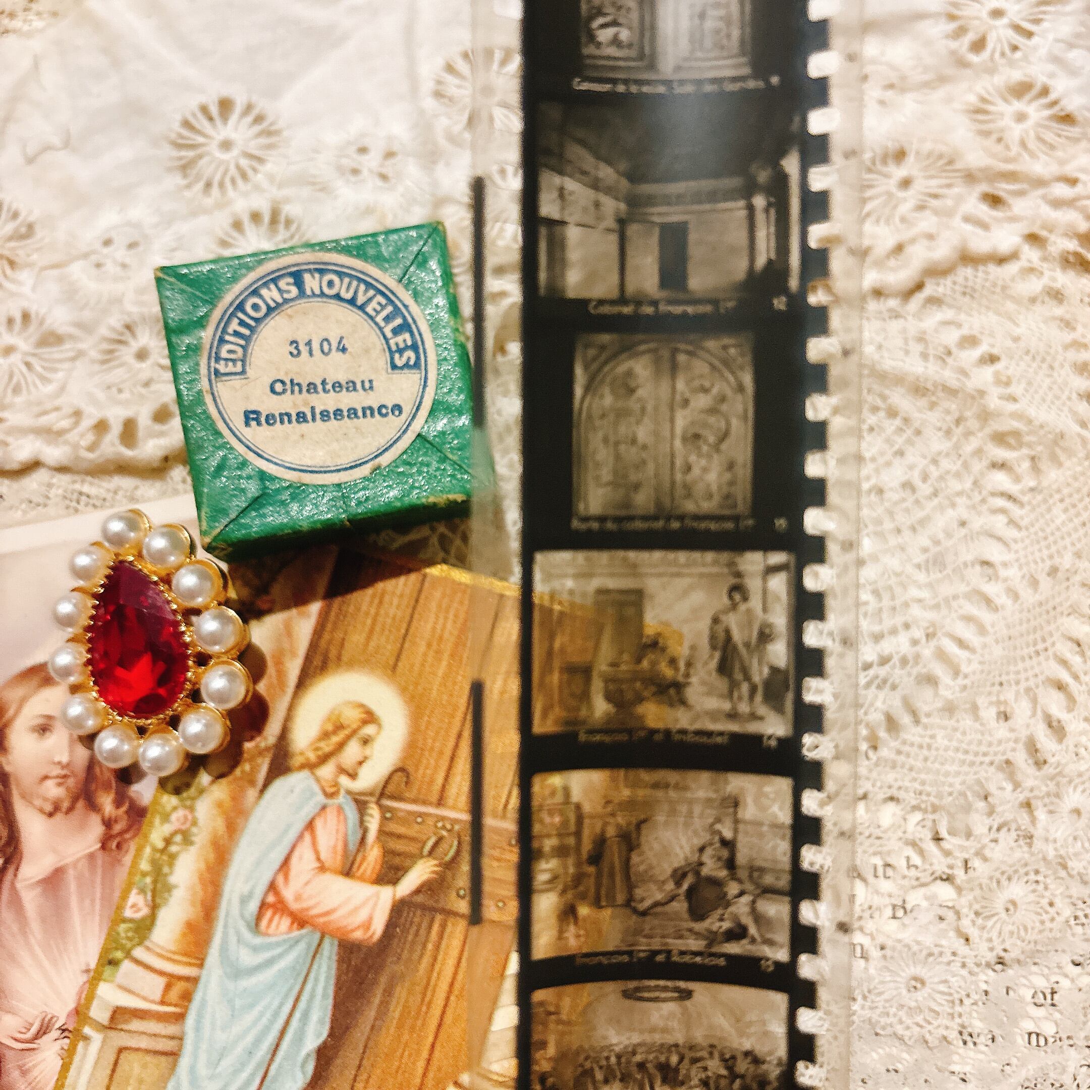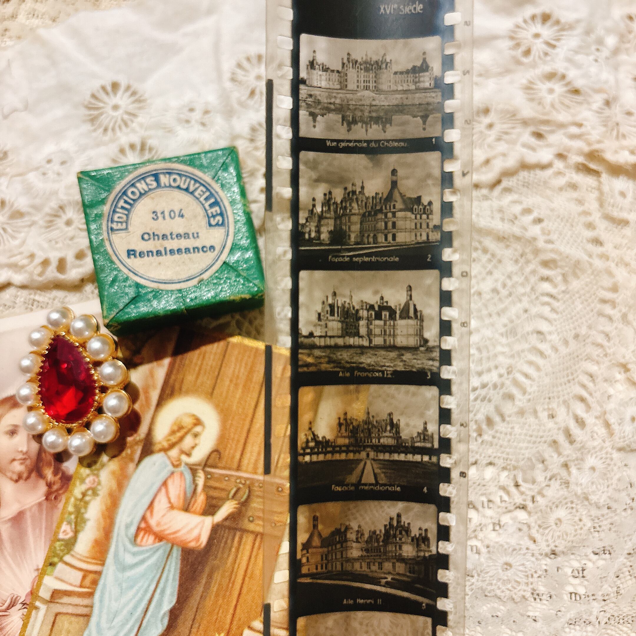 ルネサンス期のお城 フランスのヴィンテージ3.5cmネガフィルム シャビーグリーン ケース付き