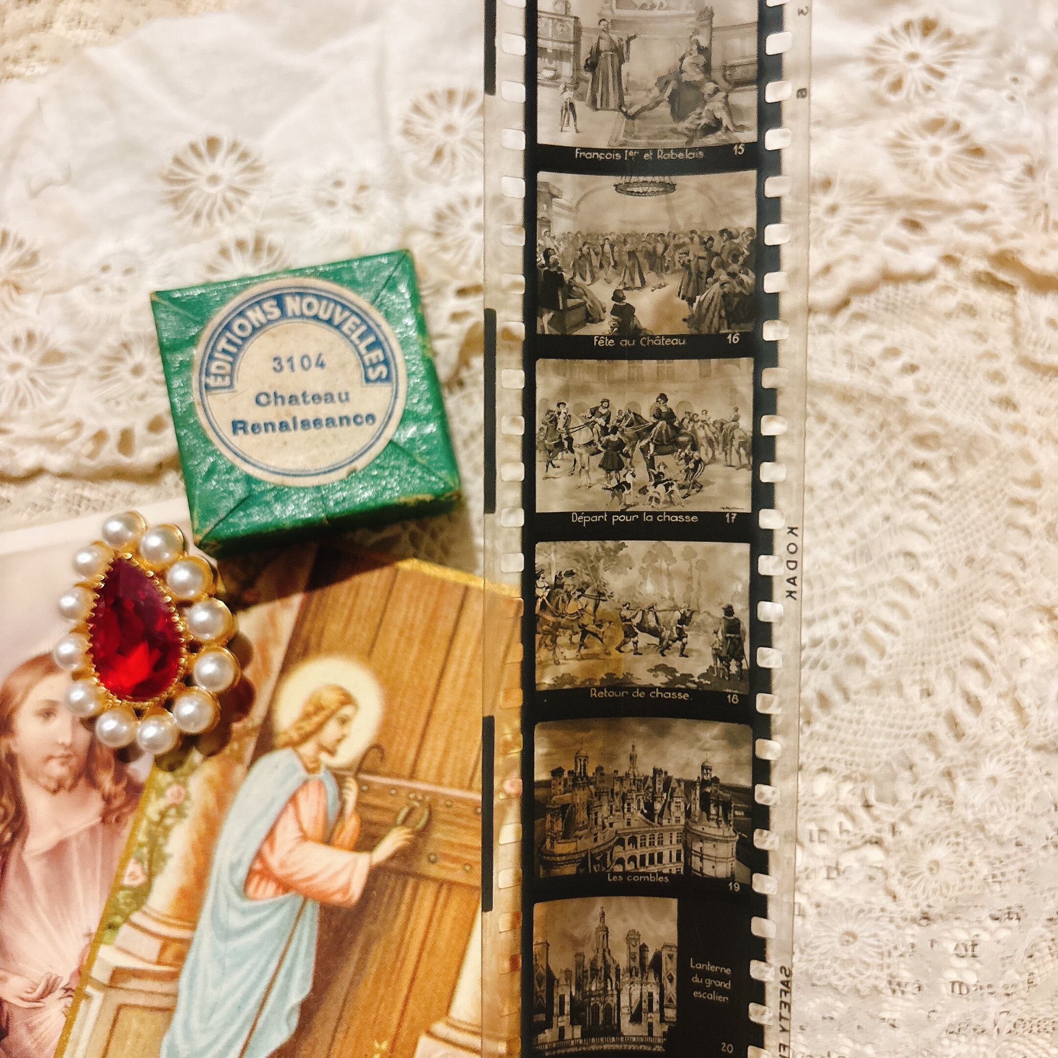 また、飾りとしてインテリアに活用したり、フィルムを透かして眺めたりするのも楽しみ方の一つです。アンティークフォトのようにアートとして楽しむのも素敵です。歴史や文化に関心がある方、ユニークな教材を探している方にもぴったりのアイテムです。フランスの教育資料として実際に使われていたからこそ持つリアルな雰囲気を感じながら、時を超えたフィルムの魅力に触れてみてください。