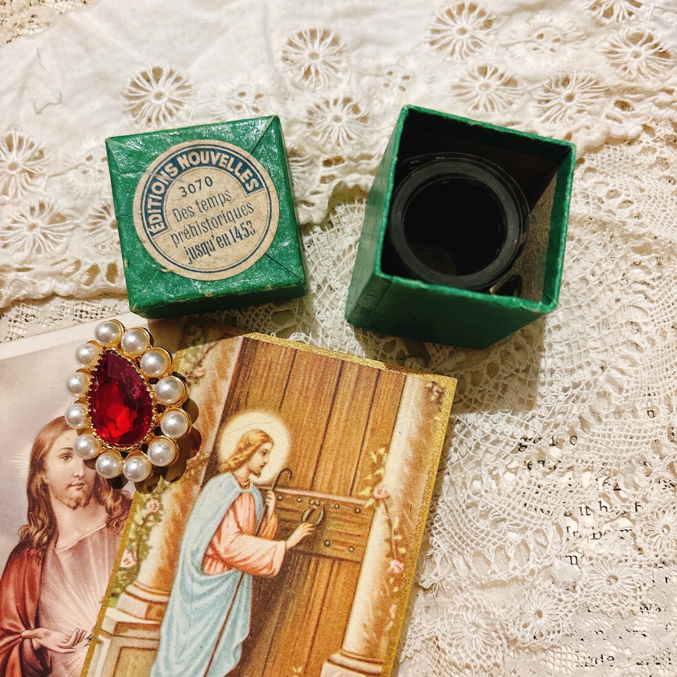 中世フランスの歴史 英仏 フランスのヴィンテージ3.5cmネガフィルム シャビーグリーン ケース付き