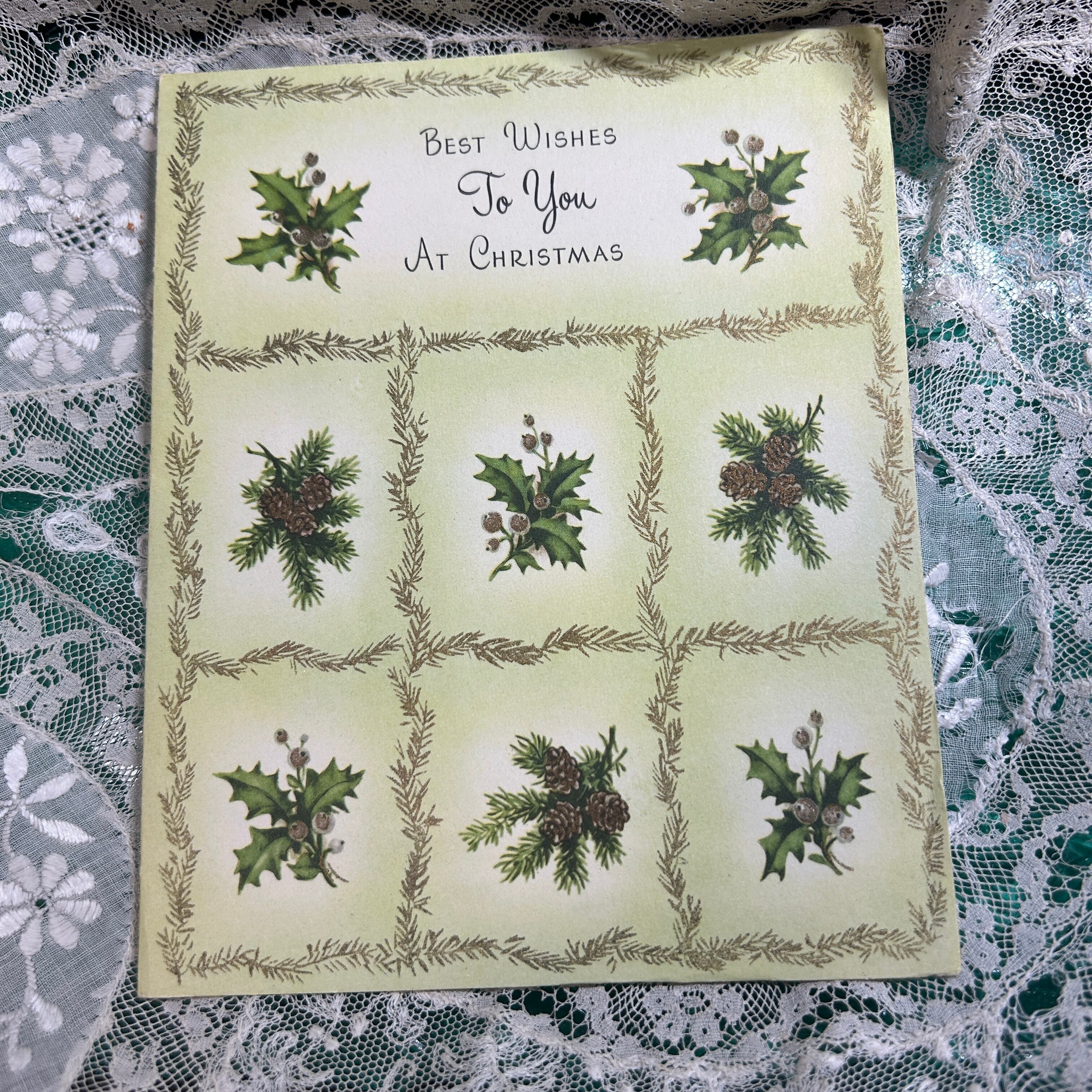 こちらは、冬の針葉樹が描かれたアンティークポストカードです。