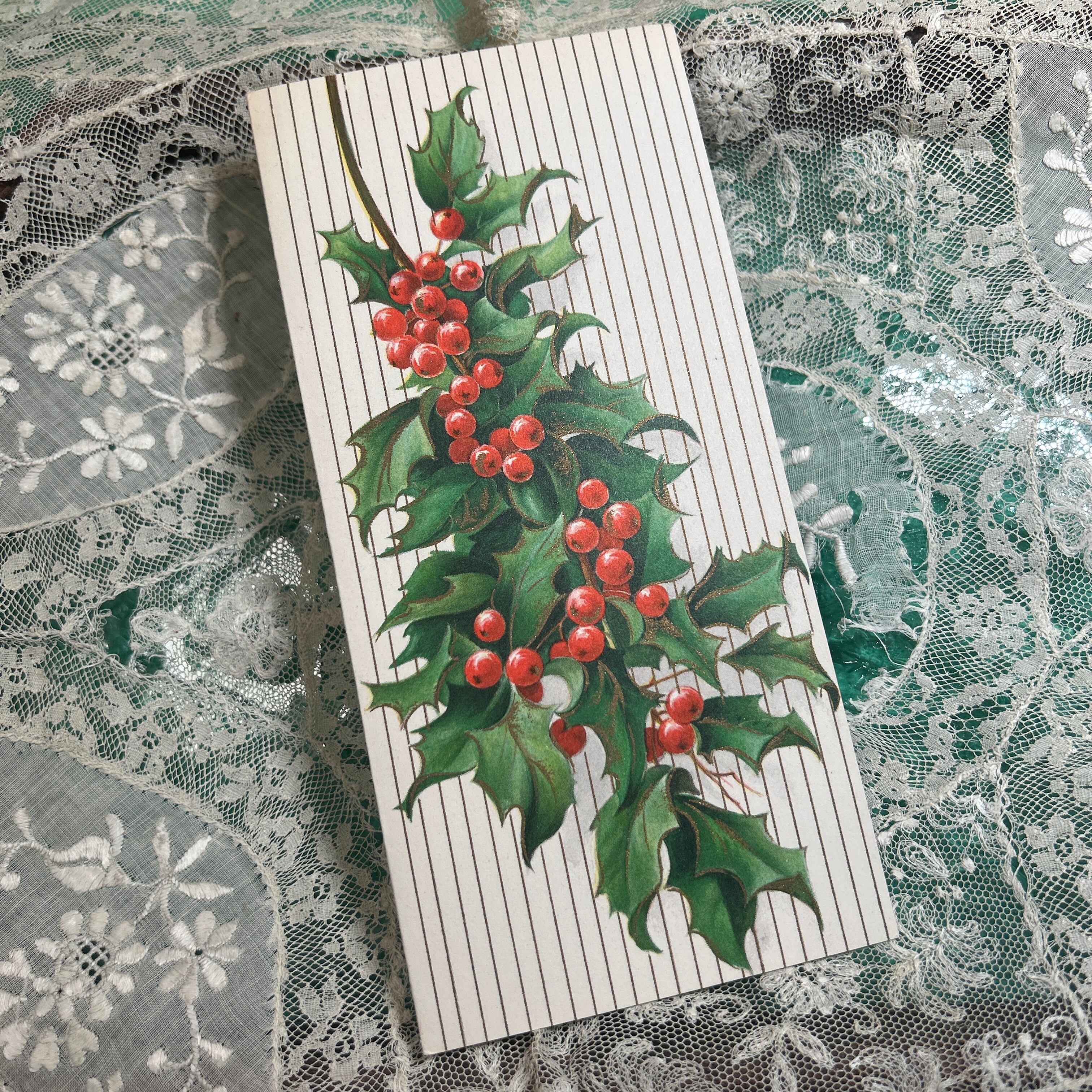 こちらは、ヒイラギが鮮やかに描かれたアンティークポストカードです。ヒイラギはクリスマスシーズンの象徴として長く愛されており、その赤い実ととげのある緑の葉は、家族や友人と過ごす特別な時間を彩るアイテムとして人気があります。ヨーロッパでは古代から邪悪なものを遠ざける力があると信じられ、家を守る植物としても用いられてきました。