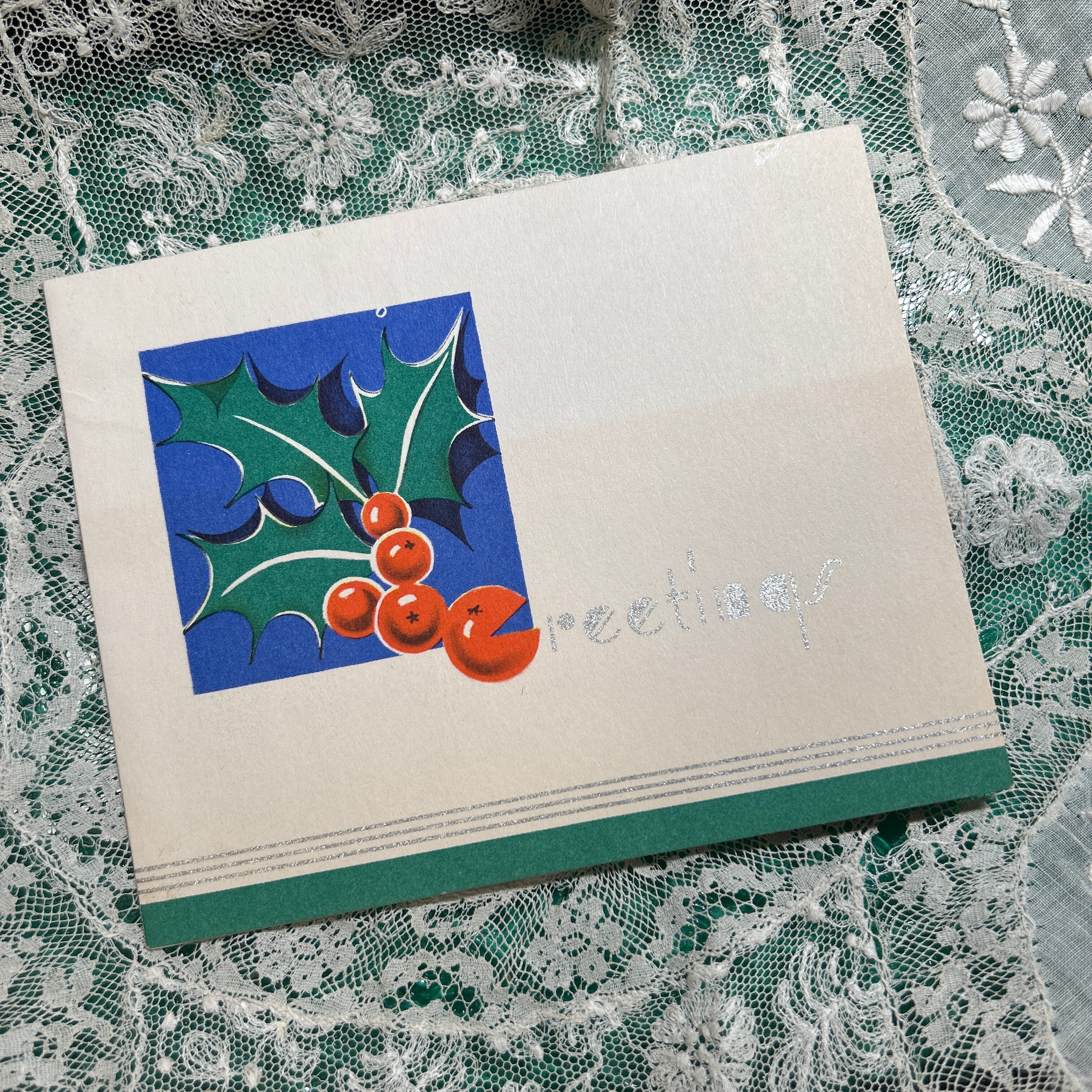 こちらは、ヒイラギが鮮やかに描かれたアンティークポストカードです。ヒイラギはクリスマスシーズンの象徴として長く愛されており、その赤い実ととげのある緑の葉は、家族や友人と過ごす特別な時間を彩るアイテムとして人気があります。ヨーロッパでは古代から邪悪なものを遠ざける力があると信じられ、家を守る植物としても用いられてきました。