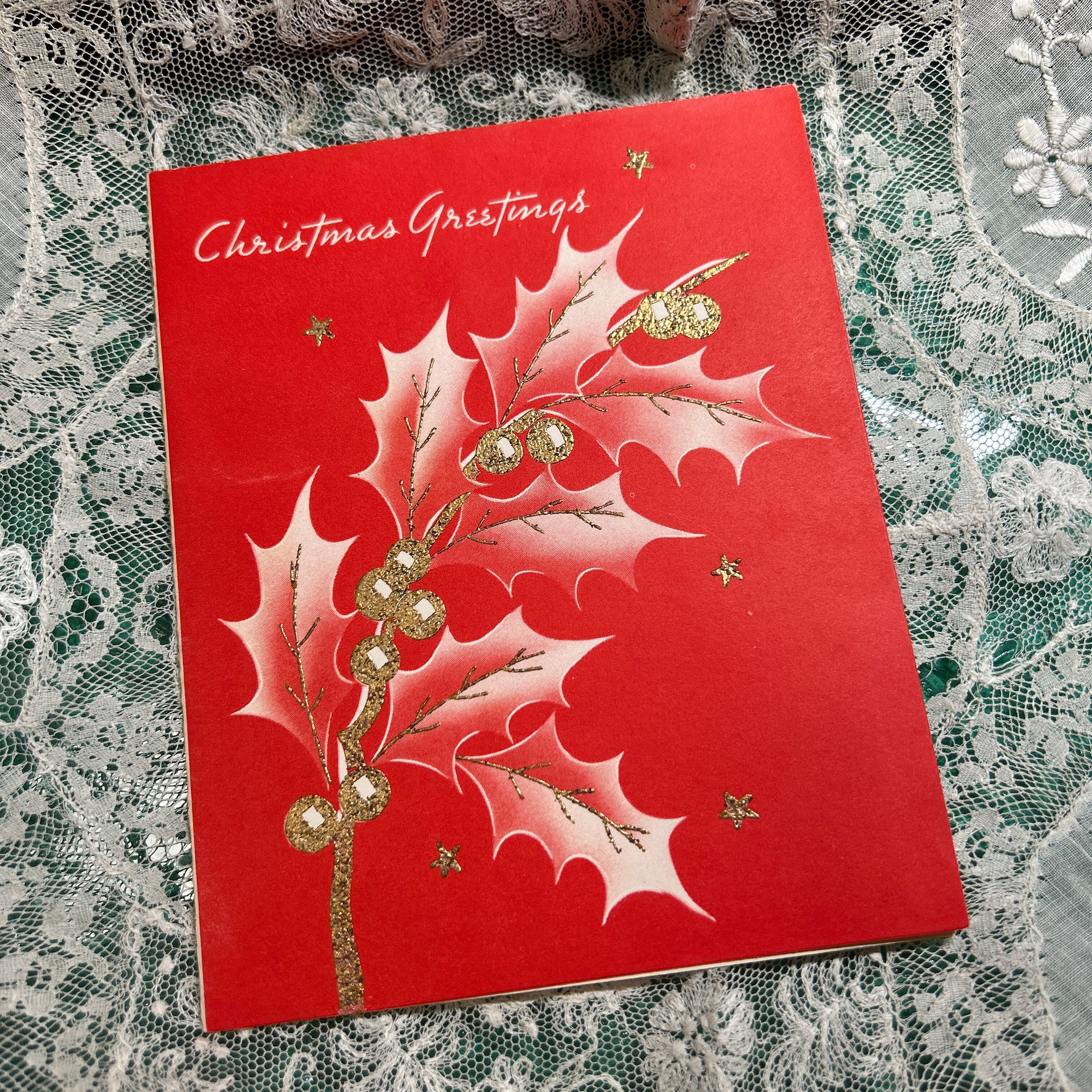 こちらは、ヒイラギが鮮やかに描かれたアンティークポストカードです。ヒイラギはクリスマスシーズンの象徴として長く愛されており、その赤い実ととげのある緑の葉は、家族や友人と過ごす特別な時間を彩るアイテムとして人気があります。ヨーロッパでは古代から邪悪なものを遠ざける力があると信じられ、家を守る植物としても用いられてきました。