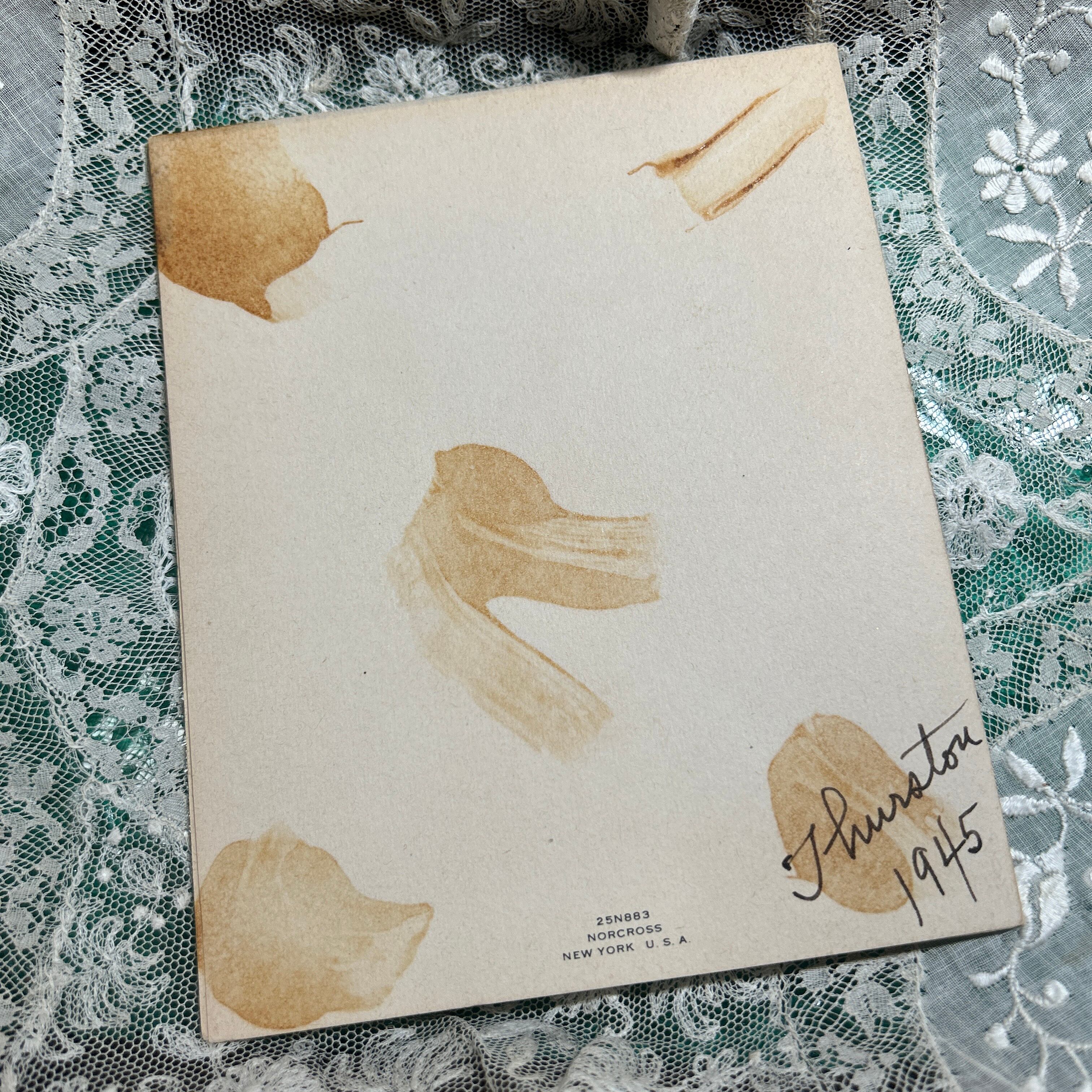 こちらは、ヒイラギが鮮やかに描かれたアンティークポストカードです。ヒイラギはクリスマスシーズンの象徴として長く愛されており、その赤い実ととげのある緑の葉は、家族や友人と過ごす特別な時間を彩るアイテムとして人気があります。ヨーロッパでは古代から邪悪なものを遠ざける力があると信じられ、家を守る植物としても用いられてきました。