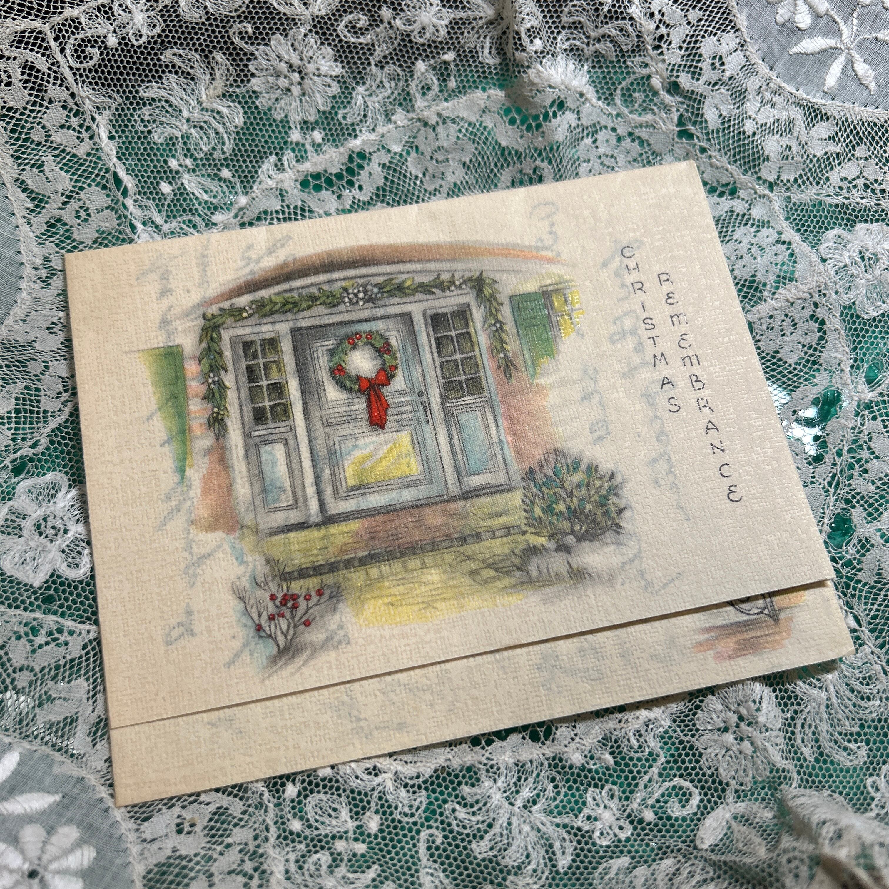 クリスマスリースを美しくデザインしたヴィンテージのグリーティングカードです。